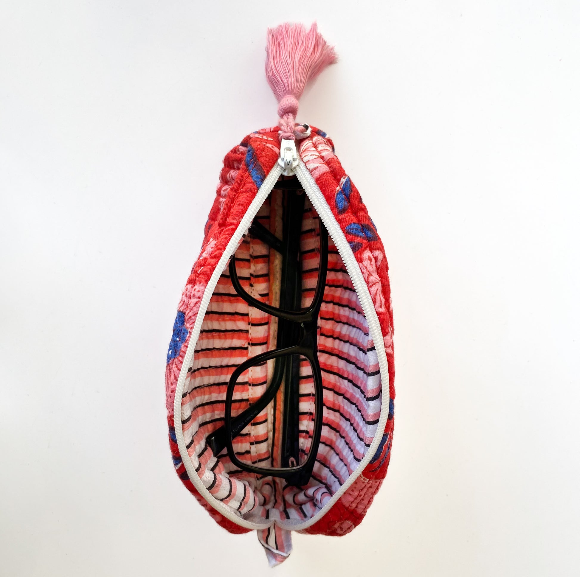 Our mini zip-up bags with a cotton stripe lining are a lovely little accessory. Perfect for glasses, a pencil case, or other small treasures.